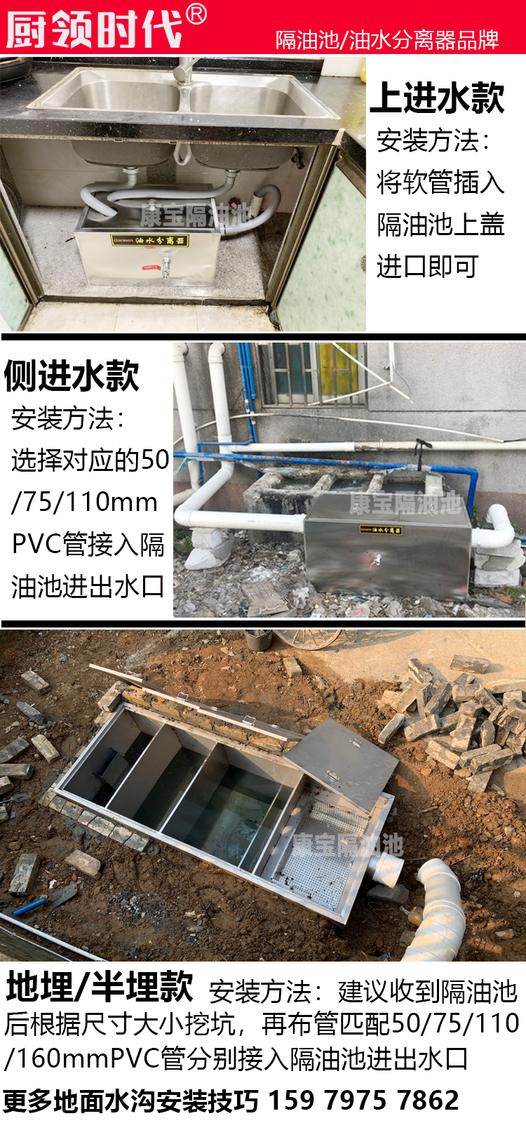 Oil-water separator stainless steel grease trap catering kitchen filter commercial customizable buried environmental certification