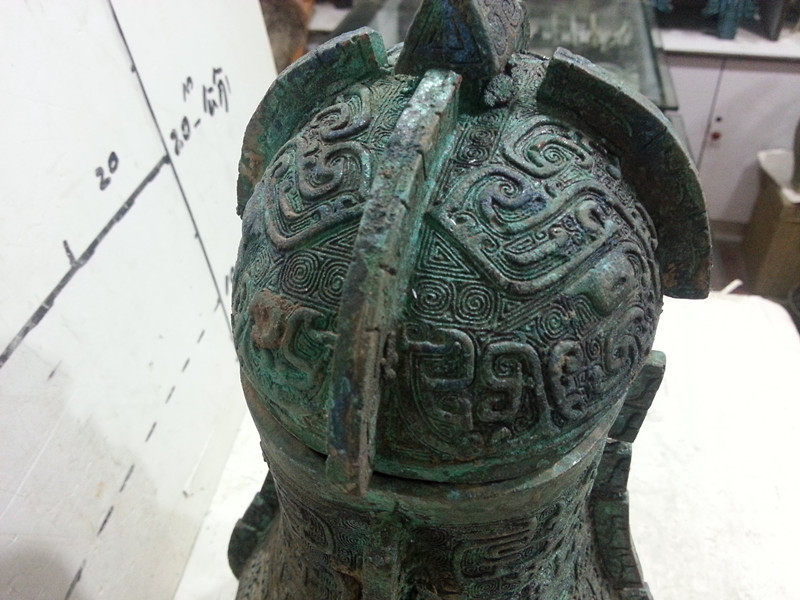 Xia Chang Zhou Antique Bronze Casting Father Zhi is a good pin of peacock blue rust collection