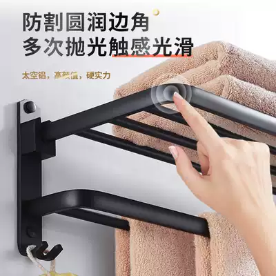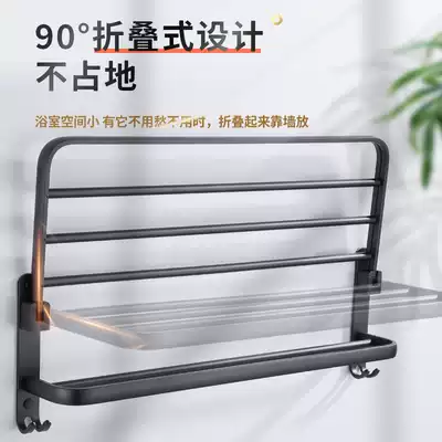 Bath towel rack without hook Folding bath towel rack with hook with double-rod folding parallel double-rod high and low double-rod 5 hooks Clothes hook tissue box rotating four-rod toilet brush with hook double-layer triangular basket affordable double-rod
