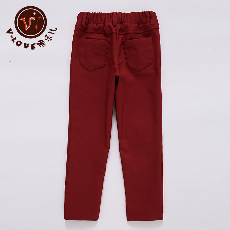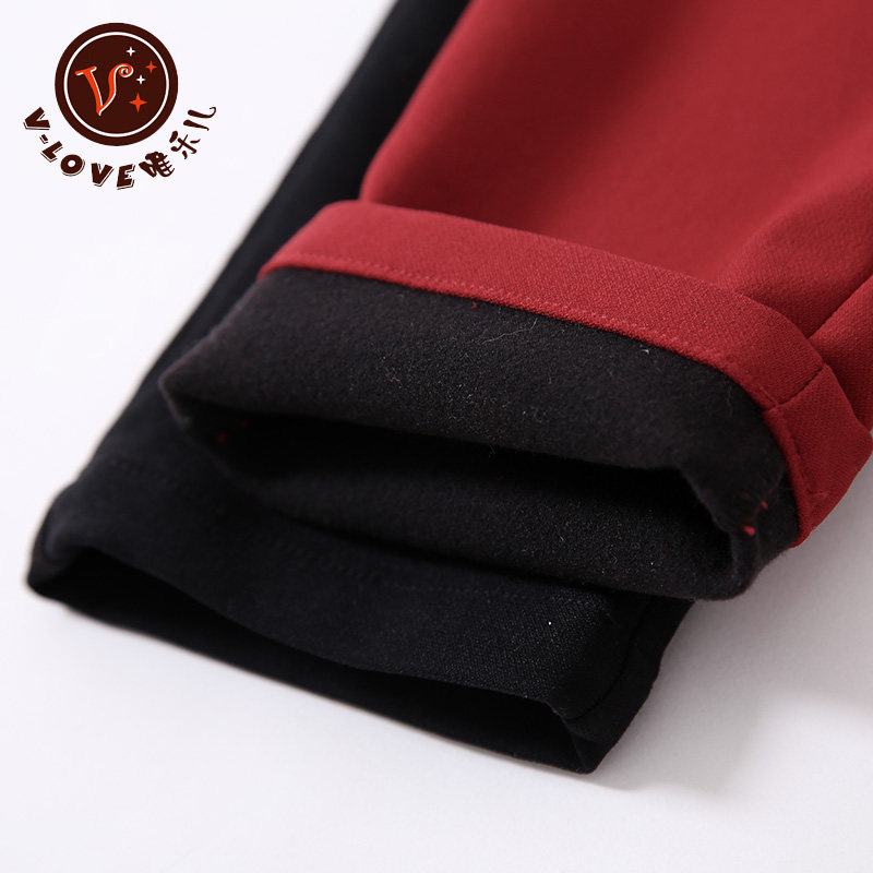 Girls plus velvet padded pants autumn and winter children's 6-9 years old casual black pants 8 little girl red children's pants