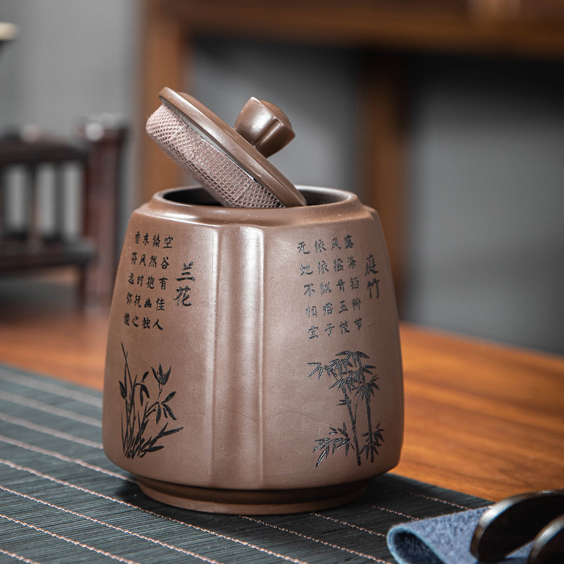 Powder cyan (alloy cover-lotus) green porcelain tea leaf jars (approx. 180 gr) Wanfu small number < square Zun > Purple Sand Tea Leaf Jars Wan Fu Medium Number < Horn > Purple Sand Tea Leaves Jar Light Blue (View Mountain) Tao