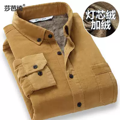 Saba Qi winter corduroy plus velvet thickened men's warm shirt men's long-sleeved Korean solid color shirt free ironing green