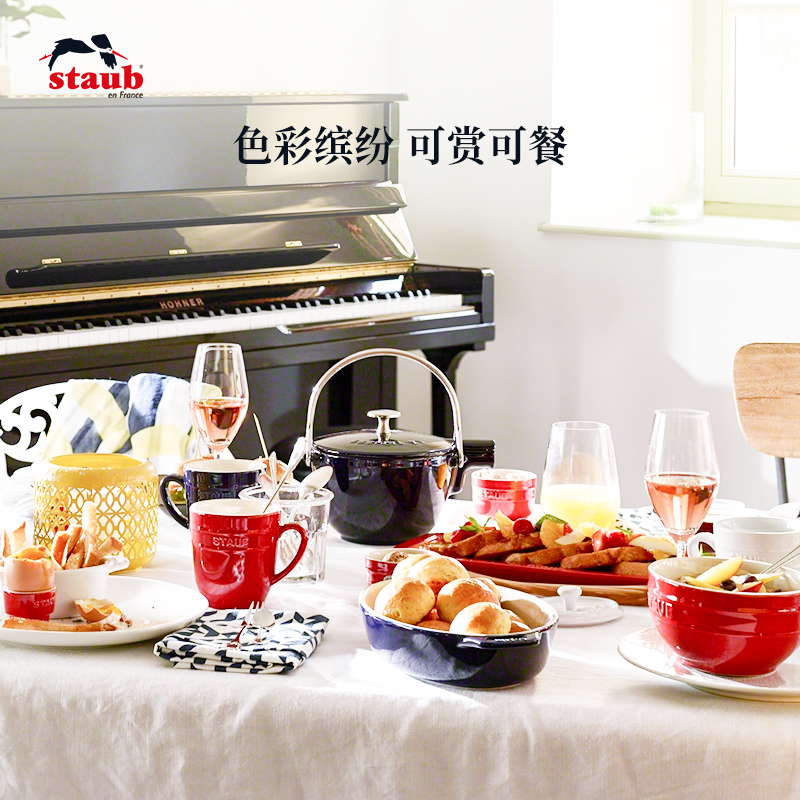 French Staub enamel ceramic large capacity breakfast pot Oatmeal breakfast cup mug Home multi-purpose