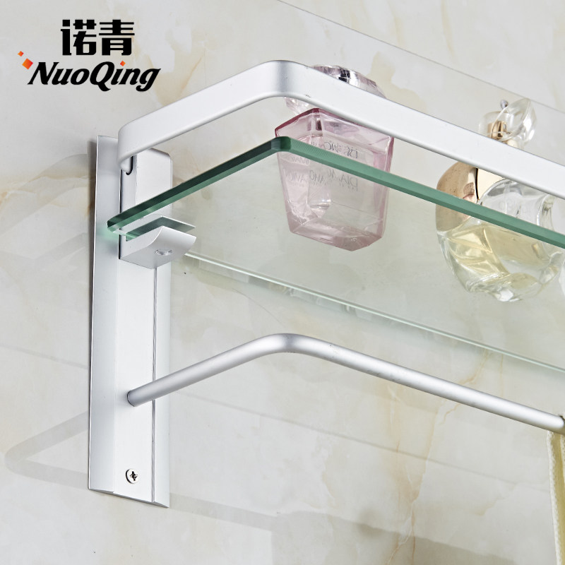 Nuoqing bathroom space aluminum storage glass shelf Bathroom bathroom hardware pendant single square bathroom shelf