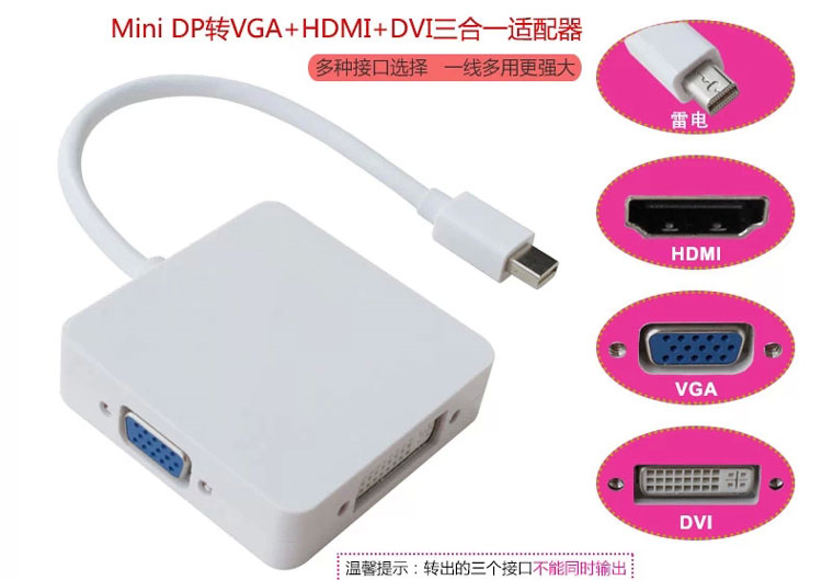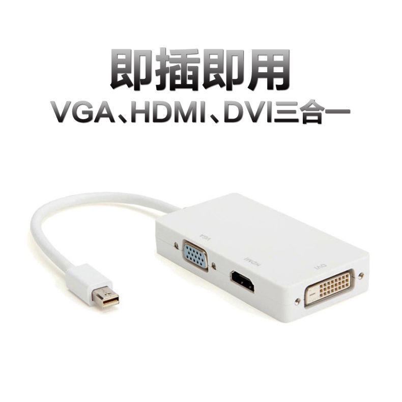 Apple Computer Thunderbolt MiniDP to VGA HDMI DVI three-in-one cable TV projector expander
