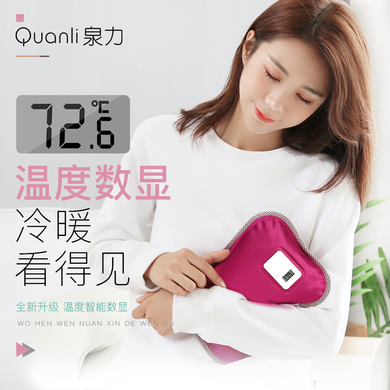 Spring Force Intelligent Temperature Display Explosion Protection Rechargeable Hot Water Bag Warm Hand Bao Electric Hot Hand Bao Warm Water Bag Electric Warm Bag Electric Warm Bag Can Be Detached Wash