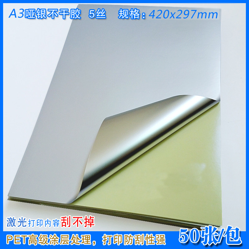A3 quick print adhesive matte silver synthetic transparent pearlescent laser light silver copper version special light writing kraft paper label paper