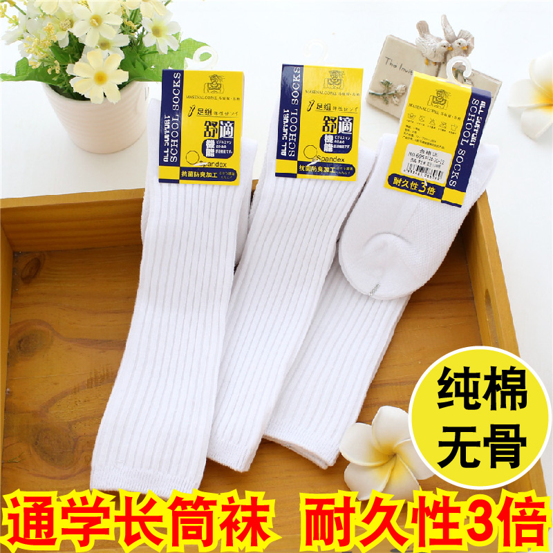 New children's stockings Hong Kong student socks pure cotton boys and girls cotton high tube white socks dress general use