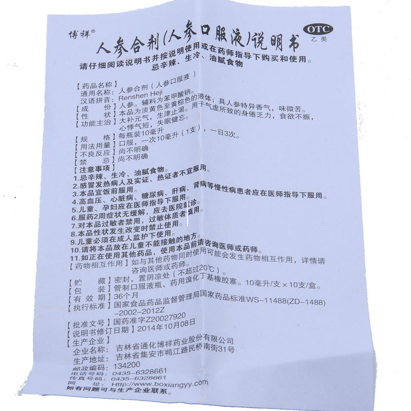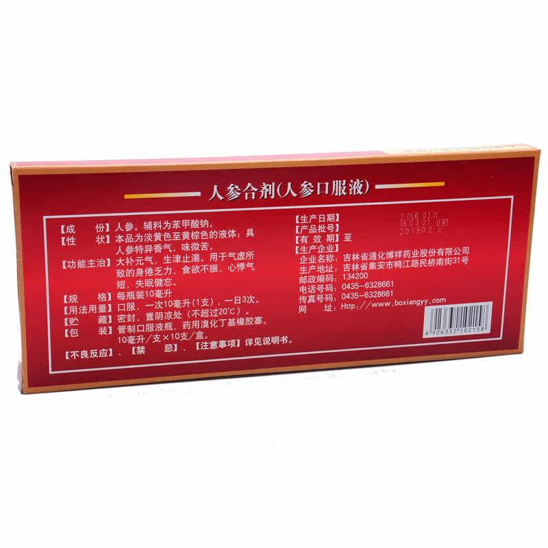 Boxiang Ginseng Oral Fluid (Mixture) 10 Insomnia Forgetfulness Palpitations with short body and weak and weak and weak qi