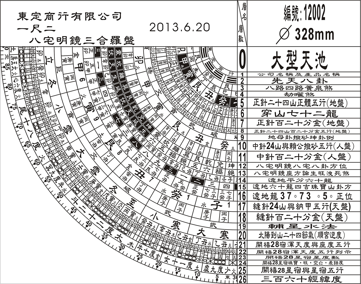 Taiwan Dongding compass 1 foot 2 triple disc electric wood pure copper feng shui compass