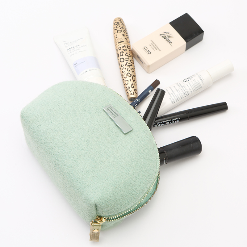 Art Youth Portable section Semicircle Makeup Bag Mouth Red Bag Portable hand Get the wool fabric Makeup Makeup Bag small number
