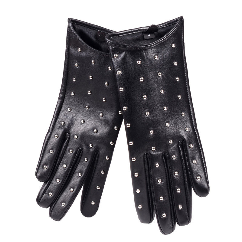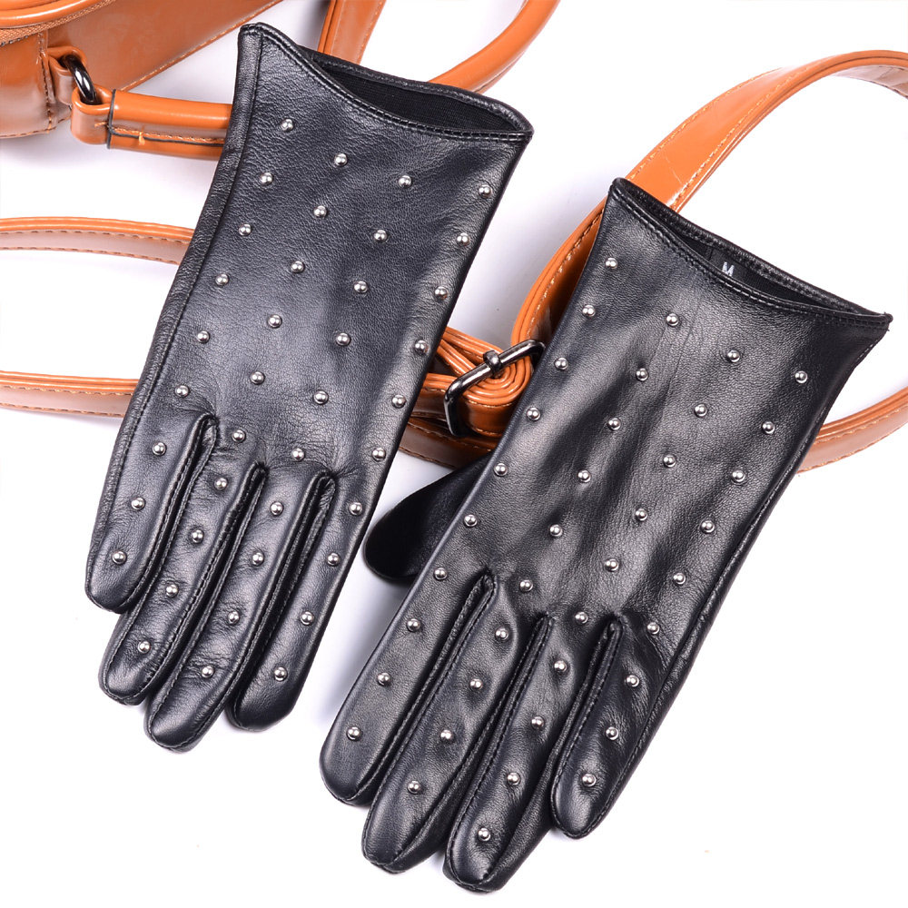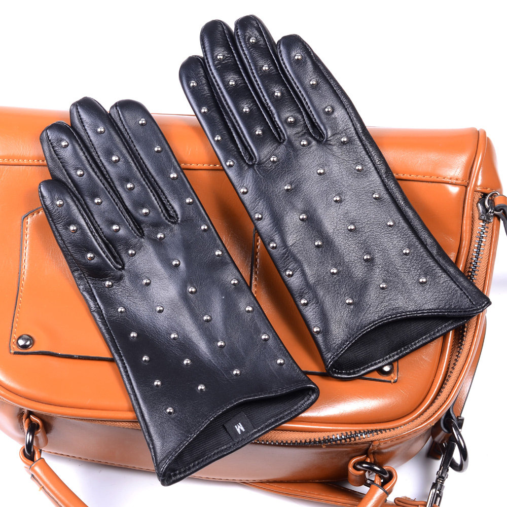 Gloves Female Autumn Winter Genuine Leather Slim Touch Mountain Goat Leather Gloves Short LOCOMOTIVE LEATHER GLOVES RIVET LEATHER GLOVES REPAIR HAND TOUCH