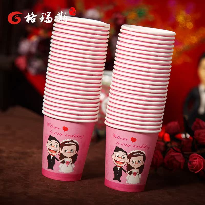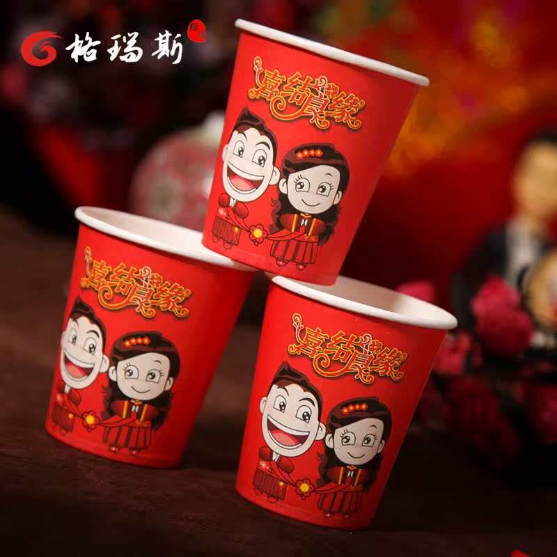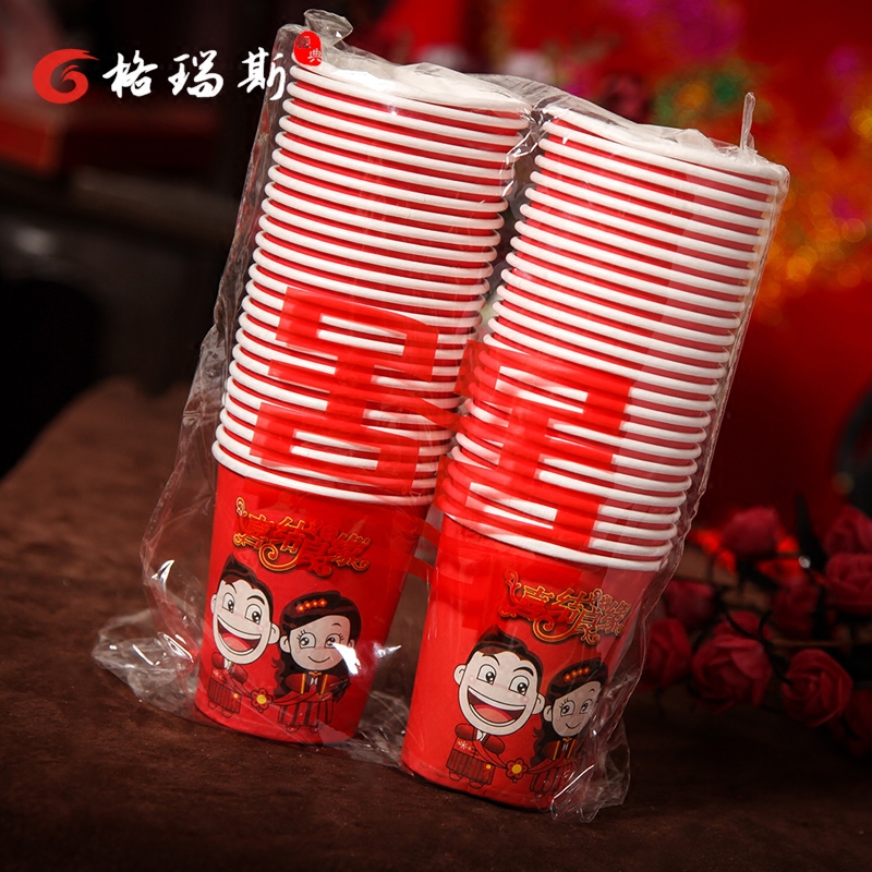 Wedding wedding thickened wedding banquet disposable paper cup disposable paper bowl chopsticks festive supplies big red paper cup