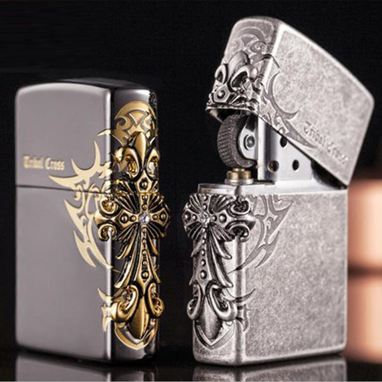 Ancient silver side cross sent (133ML oil firestone cotton core gift bag) black ice cross delivery (133ML oil firestone cotton core gift bag)