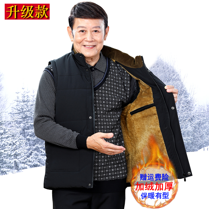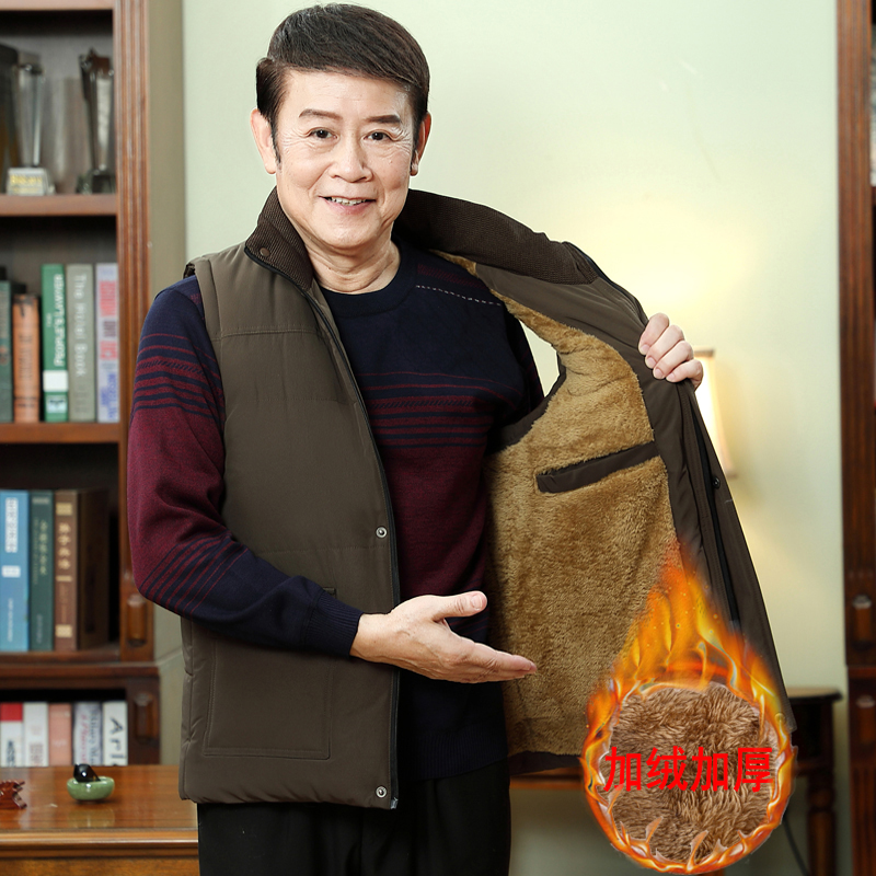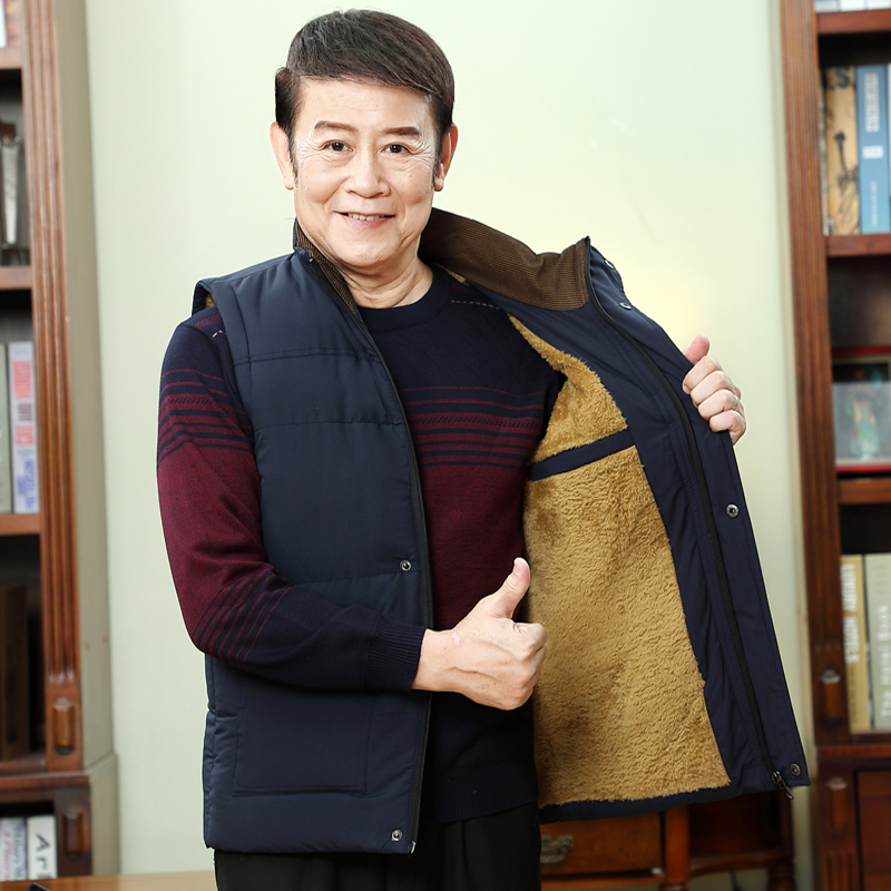 Middle-aged and elderly cotton vest male winter plus velvet thick vest elderly winter wear sleeveless shoulder daddy horse clip jacket