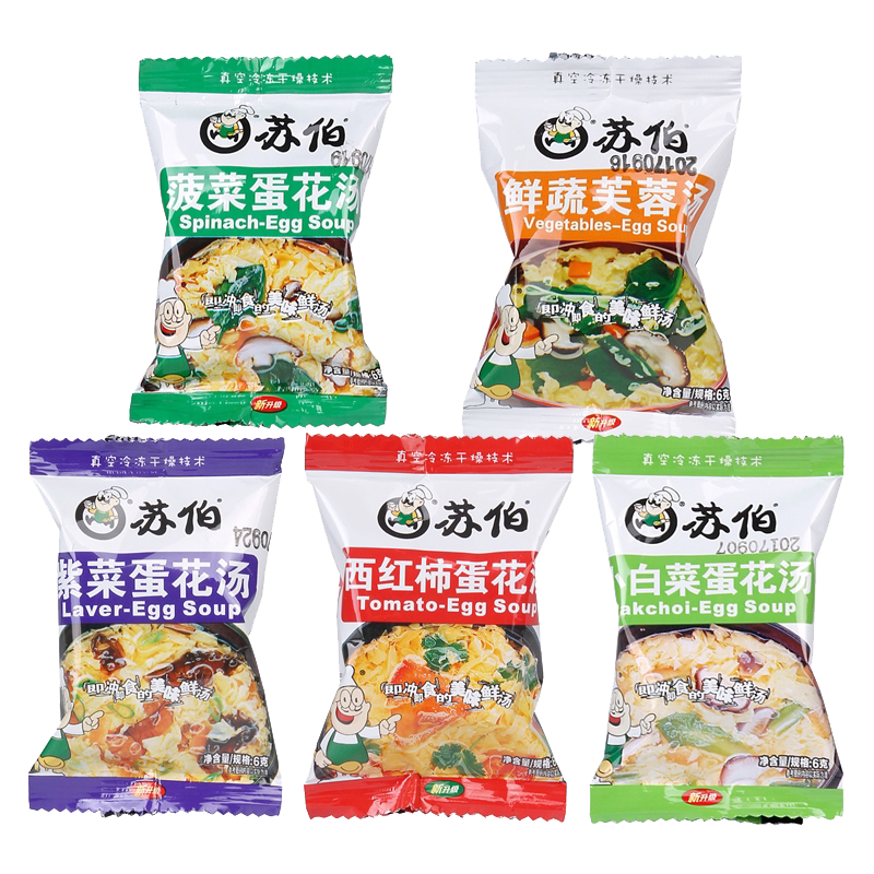 5 Taste Mashup (can specify the taste) 6g * 30 packs of spinach egg flower soup 6g * 30 packs of purple vegetable egg flower soup 6g * 30 packs of tomato egg flower soup 6g * 30 fresh vegetables hibiscus soup 6g * 3
