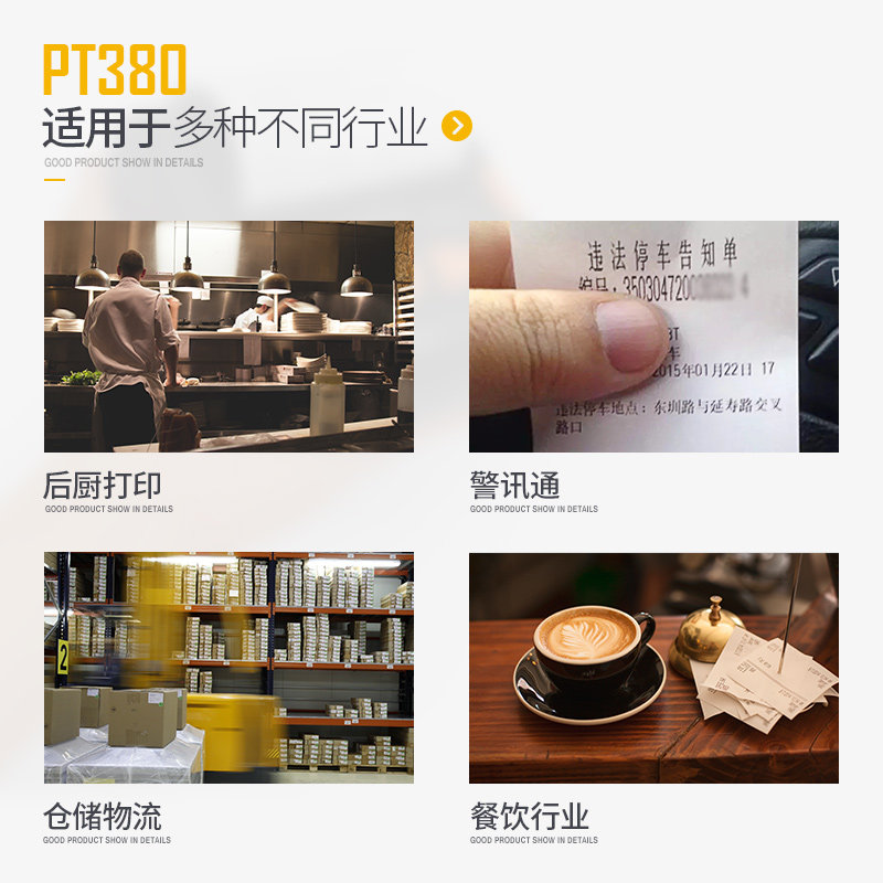 Jiabo PT380 handheld with portable commercial to muster bill 2-dimensional code printing machine handheld Bluetooth 80mm thermal milk tea clothing small ticket paper dining hungry, beauty group Baidu outside to send gold butterfly