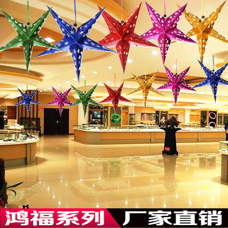 Christmas Decorations Pentagram Hollowed-out Laser Mall Hotel Festival Suspended Ceiling Decoration Hanging for the Stars pentagram