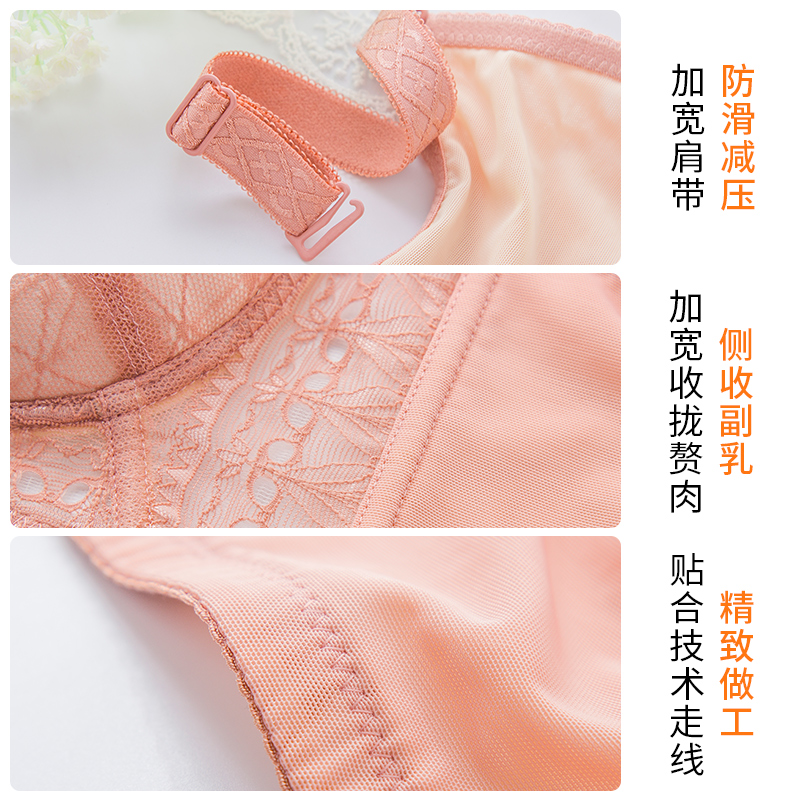 No rims No sponge bra Large size gathered thin mold cup Comfortable breathable thin adjustable underwear women's bra