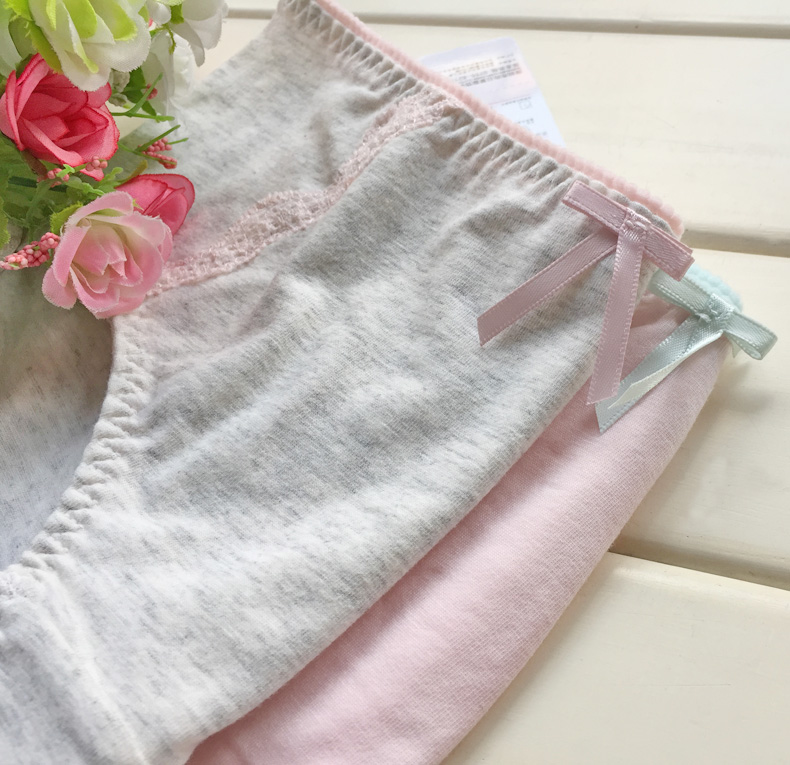 Bai Ling Bai Li cute bow cotton girl panties Middle waist briefs underpants Student big child panties Female