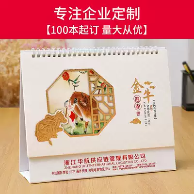 2021 Year of the Ox desk calendar Chinese style art calendar production company corporate business advertising creative calendar custom insurance gifts small fresh office desktop decoration gifts bronzing printing customization