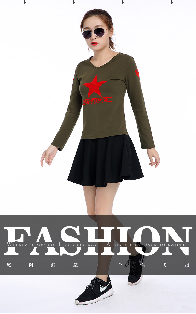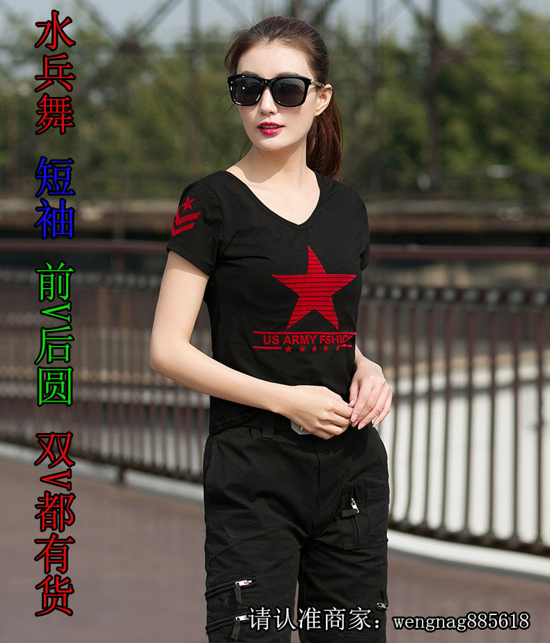 Women's double pentagram short sleeve front and back double V neckline black woman double pentagram short sleeve front and back double V Army green woman with long sleeves black woman with long sleeves Army green short sleeve black front V rear round woman with double pentagram short sleeve army