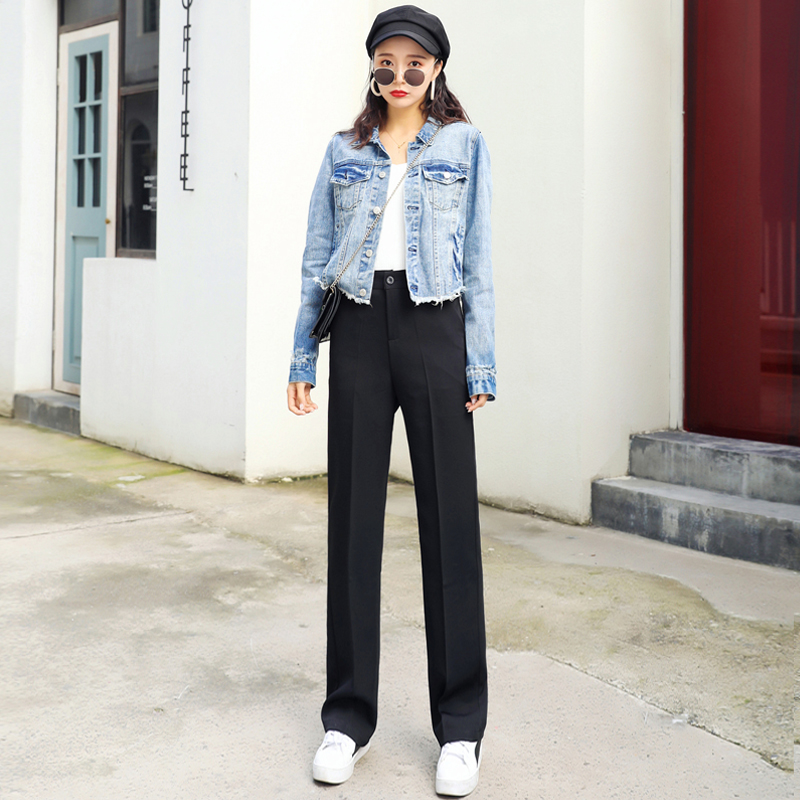 Work clothes pants to work black High waist loose straight cylinder Career positive clothing Feeling Temperamental Slightly Broadlegged Western Pants Woman