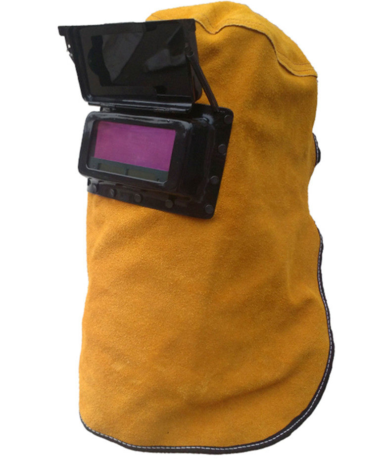 Yellow Cow Leather Welt Cap Solar Auto Turn Light Cow Leather Welding Cap Solar Automatic Light Change Lens Yellow Bull Leather Cape Hood 10 Pieces 8 Black Lenses Deliver 2 White Lenses