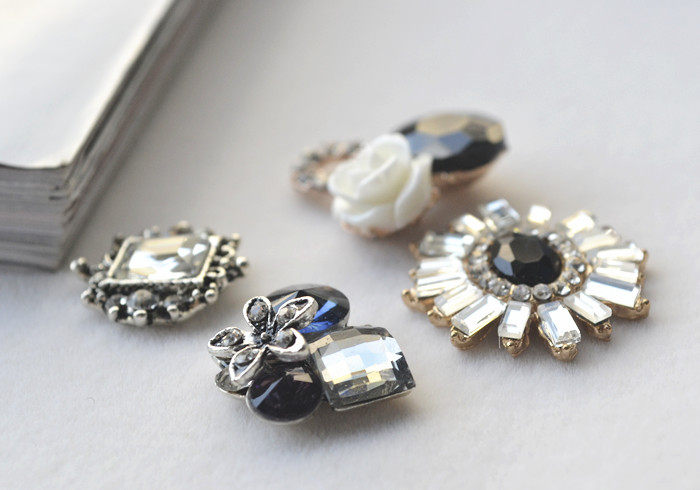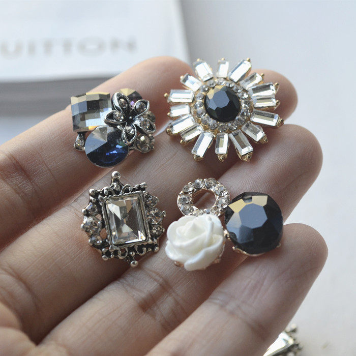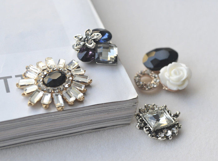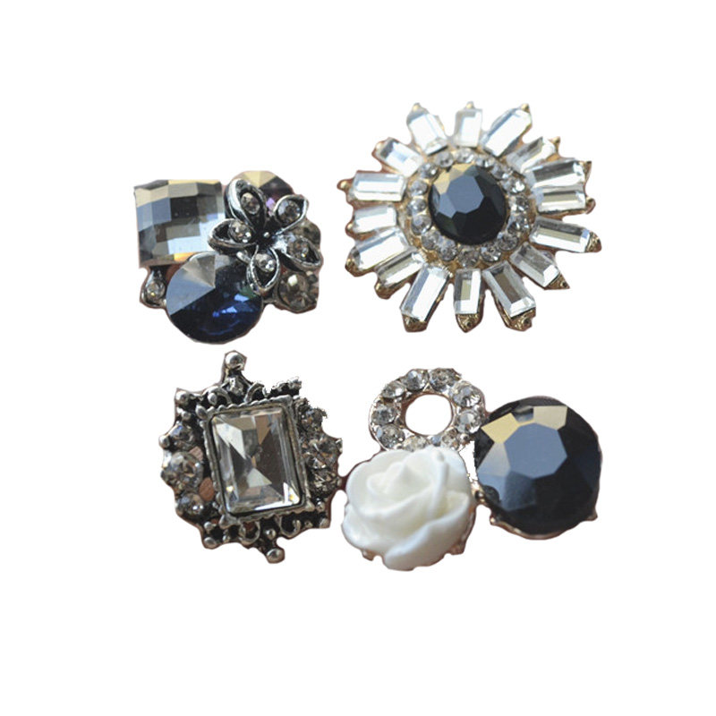 Retro Alloy Small Accessories Floral Disc Buckle Resin Flowers Black Gem Water Drill Hair Accessories Clothes Personality DIY Materials