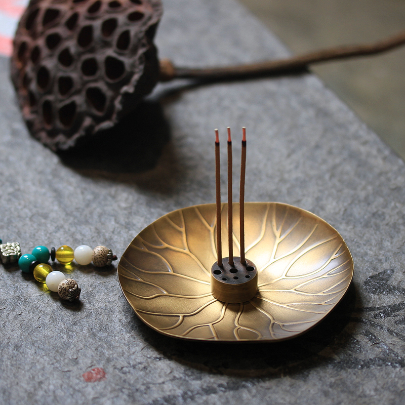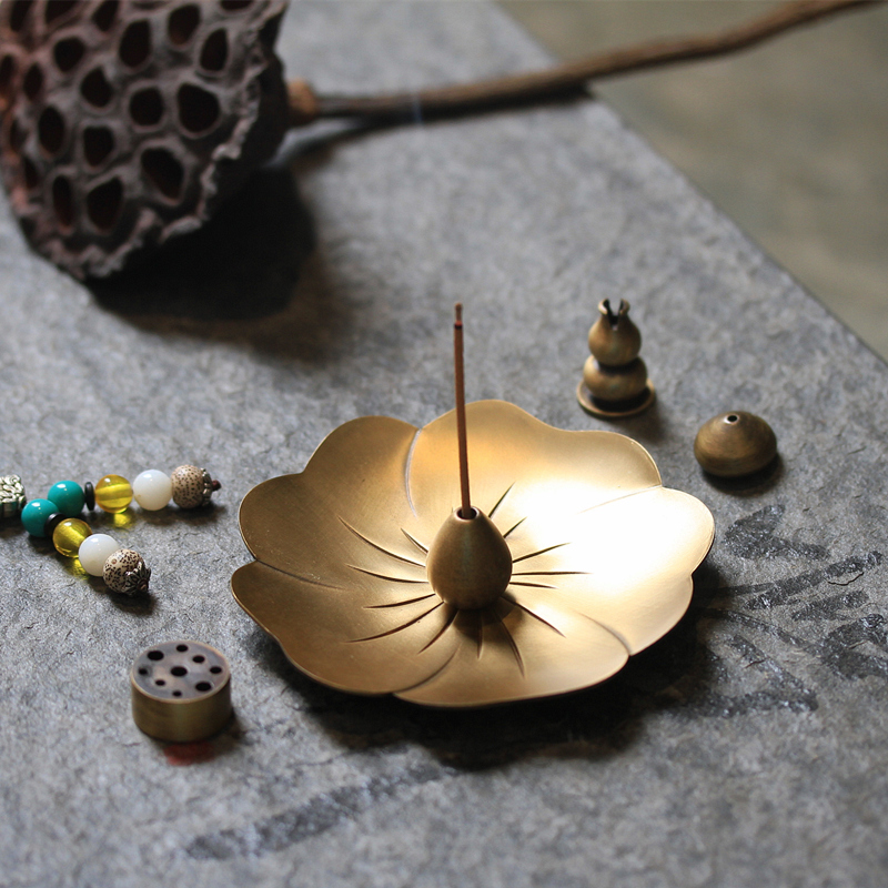 Cherry Blossom Fragrant Tray Gourd New (cherry blossom fragrant tray) brass color small drop cherry blossom fragrant tray 9 holes cherry blossom fragrant tray small drop pure copper lotus leaf fragrant tray large drop pure copper lotus leaf incense tray 4