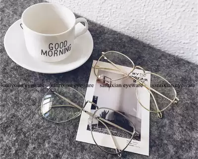 Youth flower toll Qiming same metal round frame big face myopia glasses big frame flat light retro glasses frame women