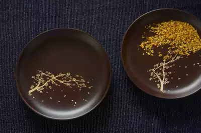 sus daily) Solid wood carved cherry blossom wooden plate wooden plate can be used as a pot tea plate