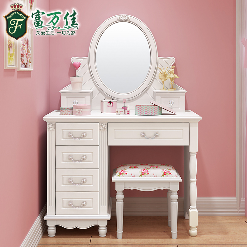 Korean pastoral dressing table Bedroom small apartment mini white makeup table Simple European solid wood makeup table