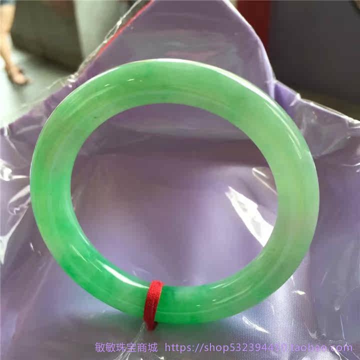 Laokeng Natural Ice Seed Yang Green Burmese Emperor Green Round Jade Jade Bracelet Women's Jade Bracelet