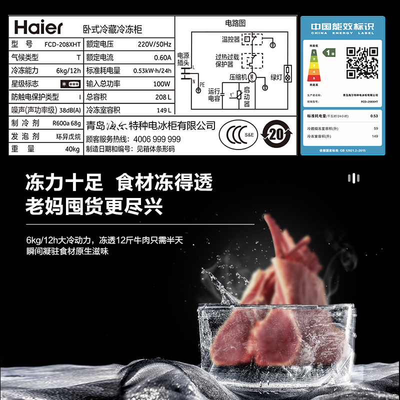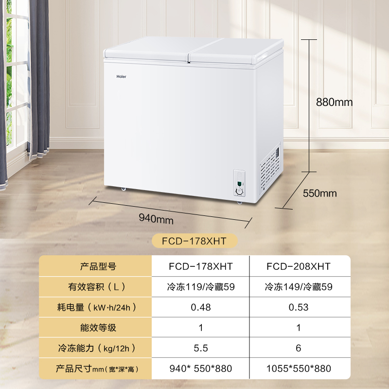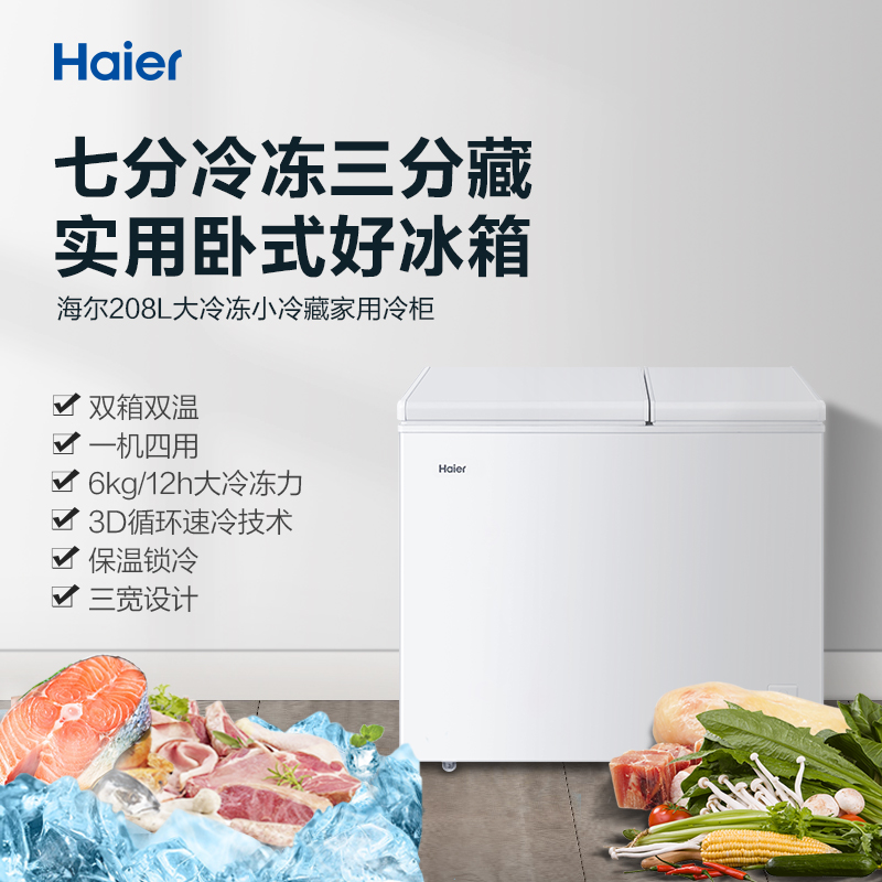 Haier Freezer Refrigerated Household Commercial Dual Temperature Small Mini Freezer FCD-178 208XHT