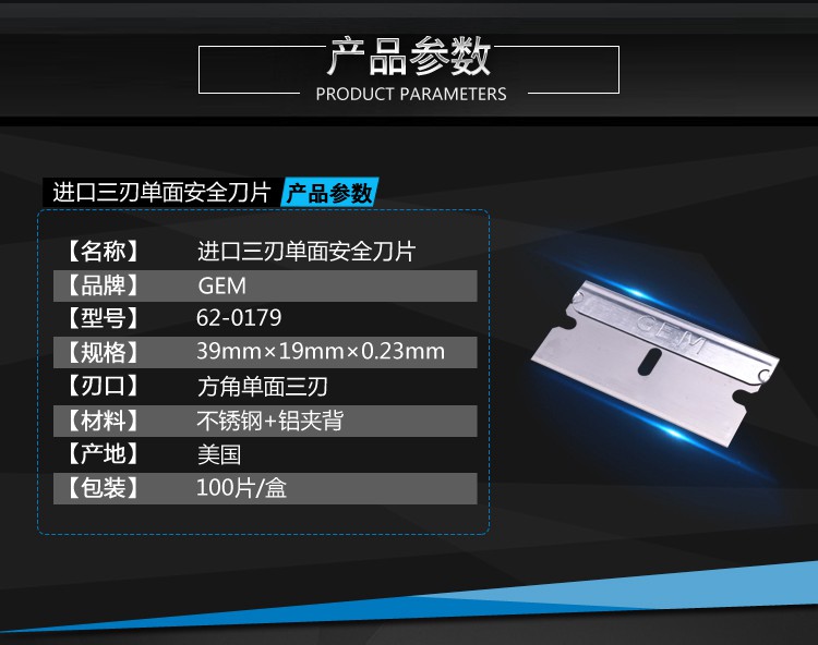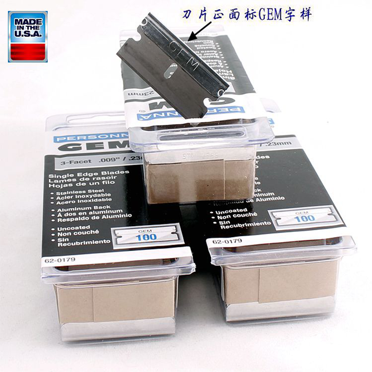 U.S. original imported GEM 62-0179 three-edged single-sided stainless steel safety blade 100 pieces