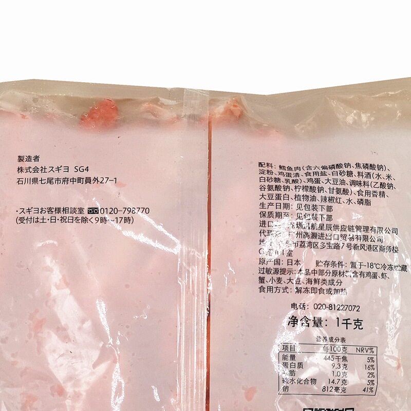 Japanese Sushi Cuisine Imported V-shaped crab fillet Crab stick crab meat Artificial crab fillet Fire hot crab stick