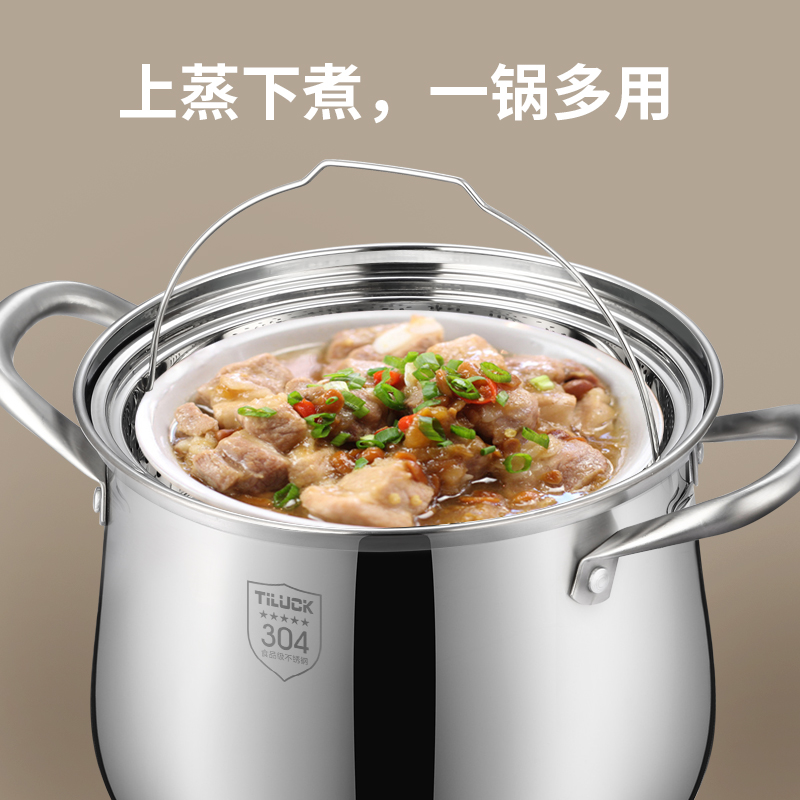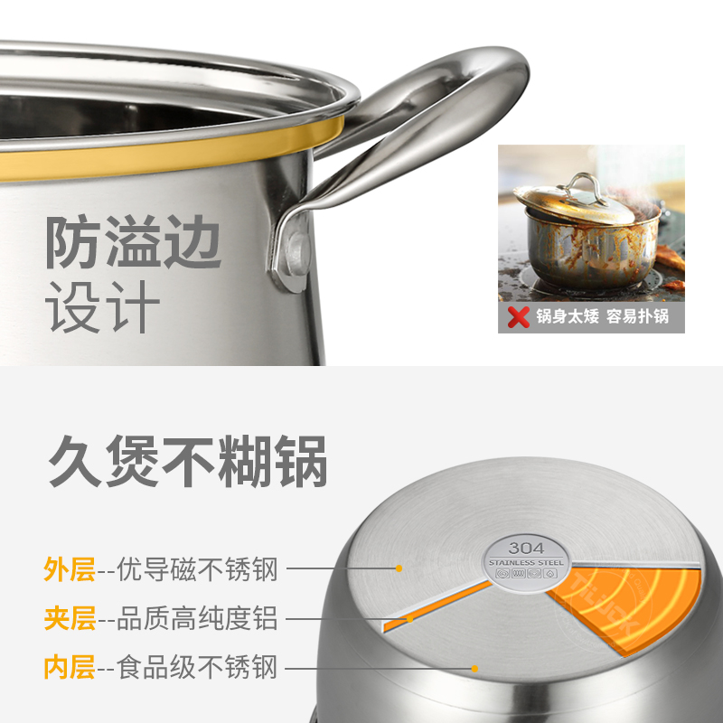 Tilox soup pot stainless steel 304 thickened composite bottom 20cm pot with saucepan 22cm saucepan induction cooker universal