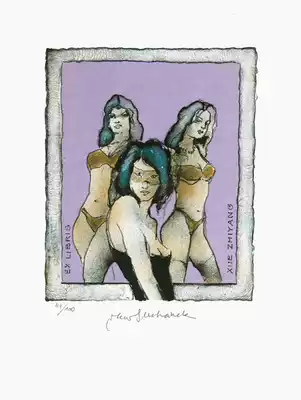 Czech-Suchanick (Vladimir Suchanek) stone version of the book collection ticket "Three Goddess of Beauty"