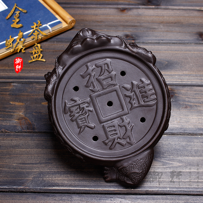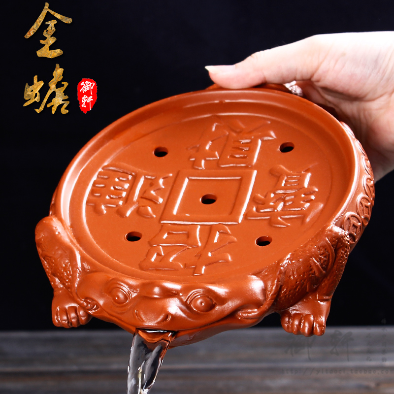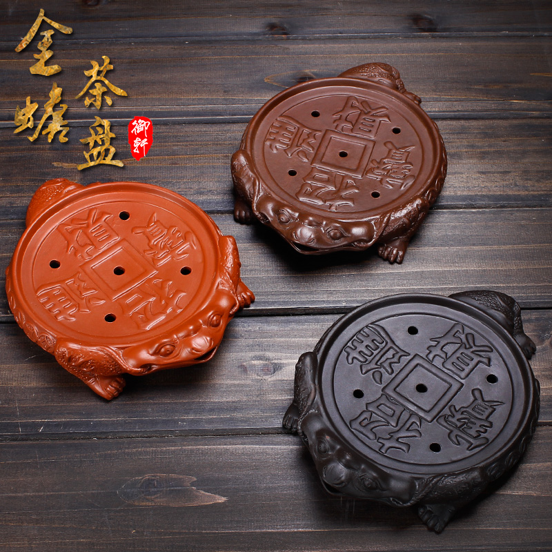 Kungfu tea tray purple sand tea pot bearing three-legged toad Zhaocai Jin Bao ceramic tea set dry bubble Storage Mini