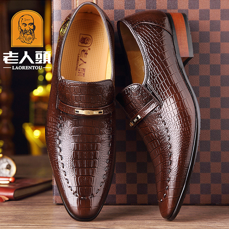 Old man's head shoes spring business positive dress leather shoes breathable genuine leather crocodile tattooed cow leather jacket foot wedding leather shoes