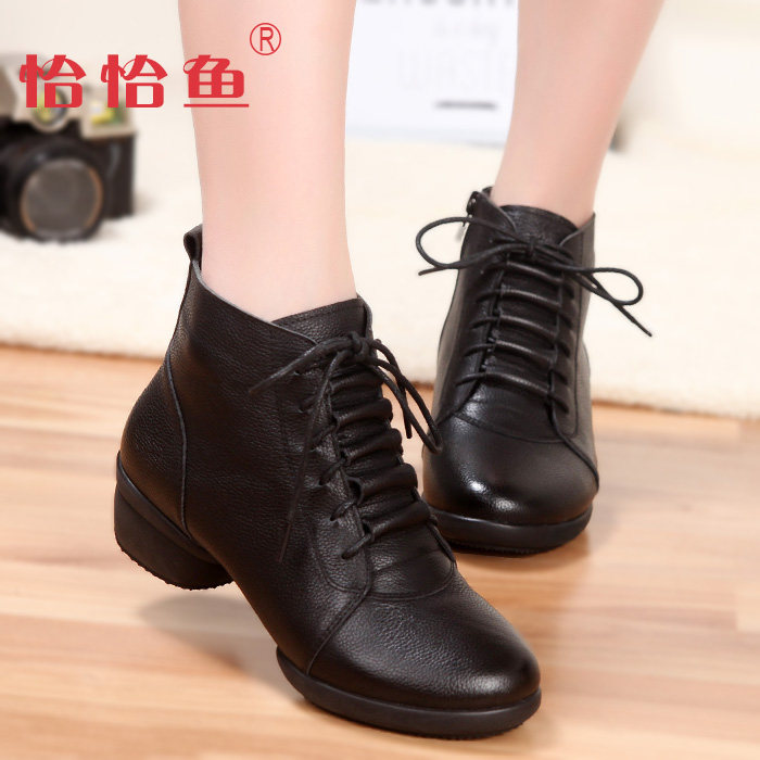 Precisely Fish Genuine Leather Dance Shoes Spring Autumn Season New Square Dance Shoes Women Soft Bottom Water Soldiers Black Dancing Shoes Women Soft Bottoms