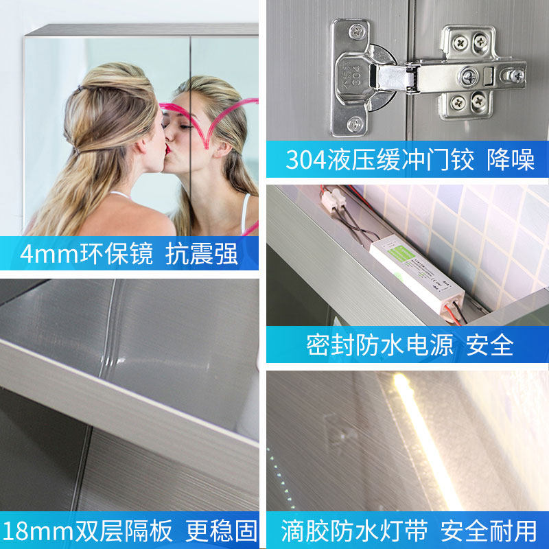 Stainless steel mirror cabinet with light Bathroom mirror cabinet box Toilet wall cabinet Powder room bathroom cabinet Wall cabinet