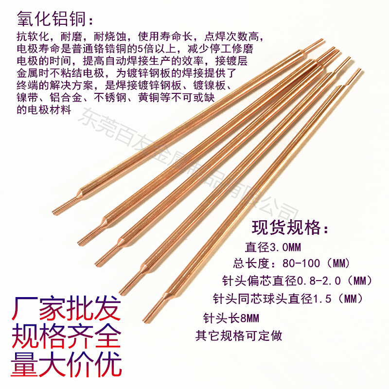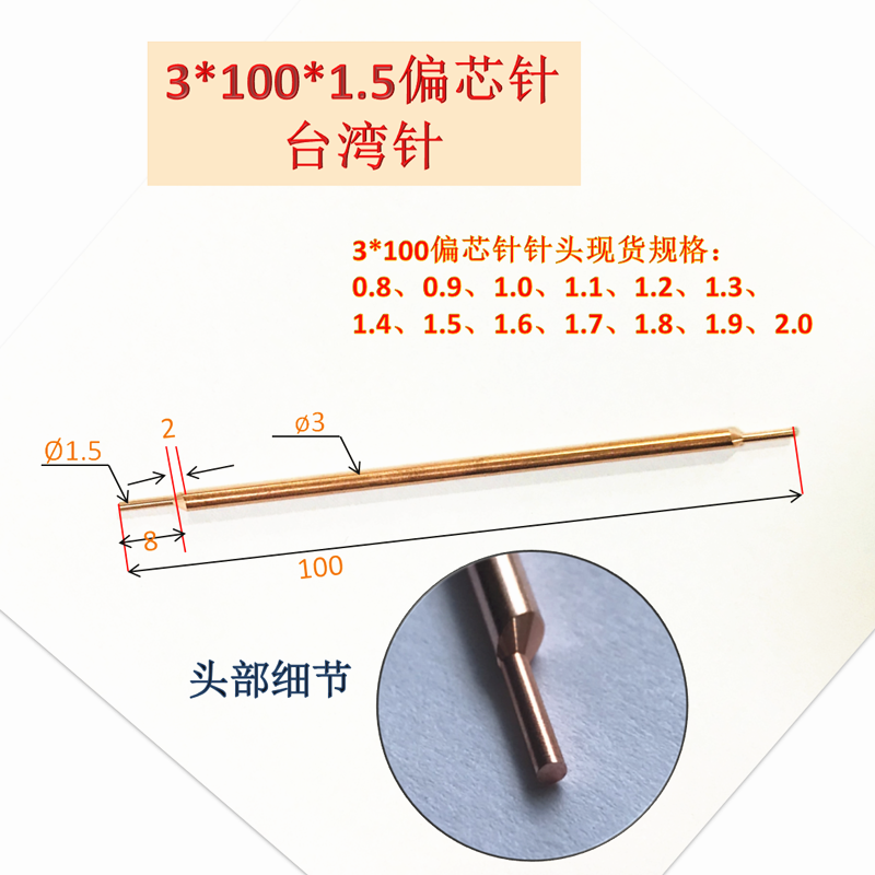 Domestic needle ø3*80*ø1.5 polar core needle domestic needle ø3*100* ø1.5 eccentric needle Taiwan needle ø3x82xø1.5 deflection needle Taiwan needle ø3x100xø1.5 deflection needle American needle ø3x80xø1.5 deflection needle American needle ø3x100xø1.5 bias needle Taiwan needle ø3x100x 53x100x 51.5 SMIC needle header Taiwan needle ø3x82xø1.5 eccentric needle header Taiwan needle ø6x82xø2.0 deflection needle American needle ø6x82xø2.0 deflection needle Taiwan needle ø1.5x100mm long ball head Taiwan needle 51.7x100mm long ball head Taiwan needle ø1.8x100mm long ball head Taiwan needle ø2 .0x100mm long ball head American needle 51.5x100mm long ball head American needle 51.7x100mm long ball head American needle 51.8x100mm long ball head American needle 52.0x100mm long ball head bump welding needle 53*ø6*3 thick energy storage welding electrode ø13*50*ø14 tungsten other specifications customized incoming processing