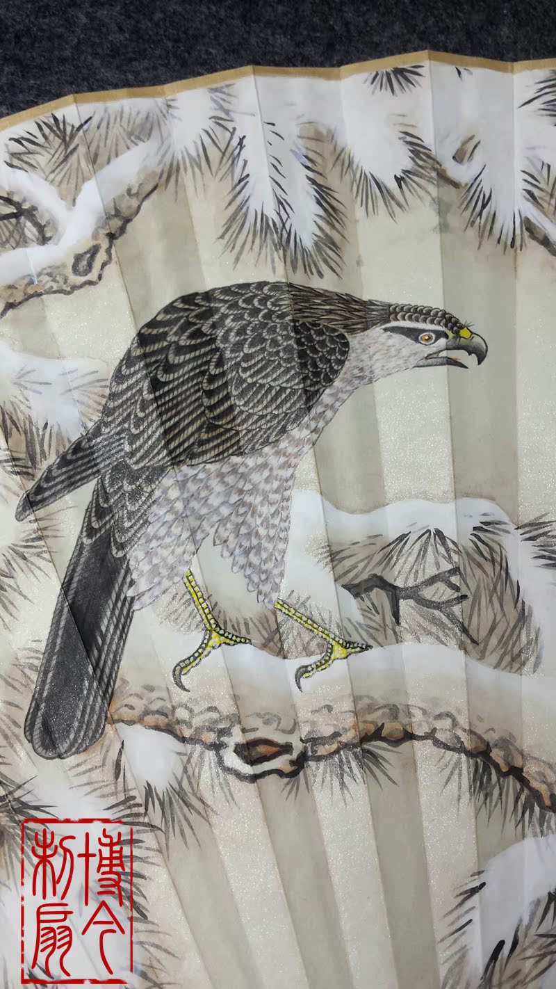 (Bojin fan) Tianjin famous 95 inches 18 square boutique gong pen Mengfeng fan surface Cedar Mengfeng poultry diagram