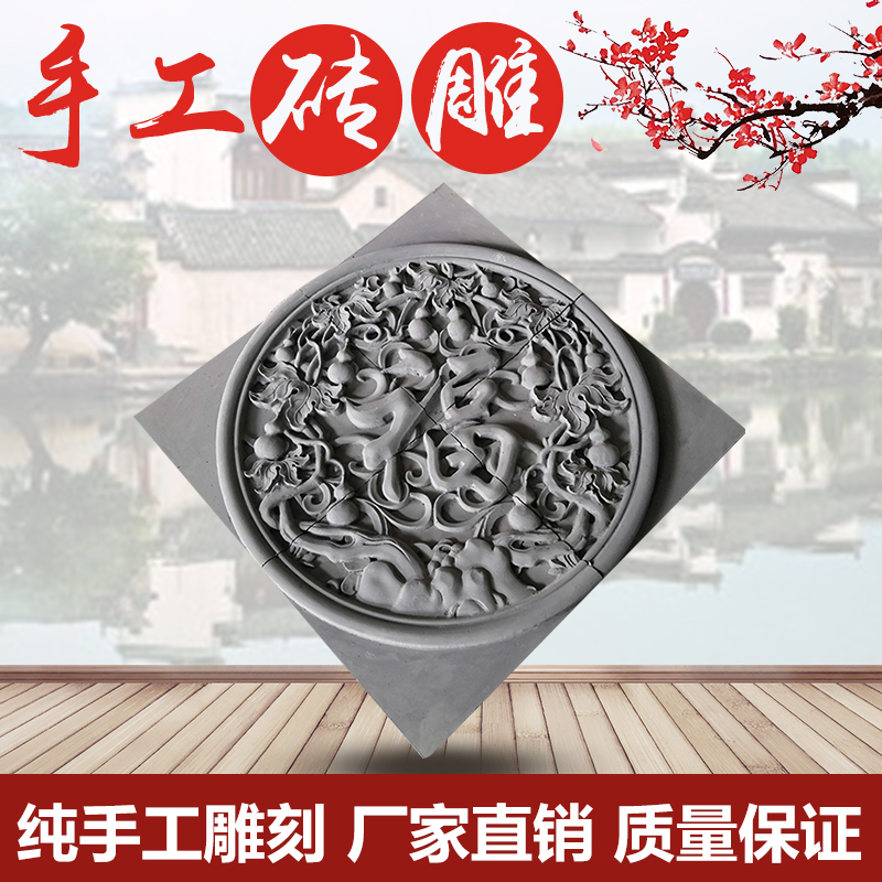 Antique brick carving Hand-carved Chinese ancient building decoration fan-shaped brick carving shadow wall painting hollow relief can be customized