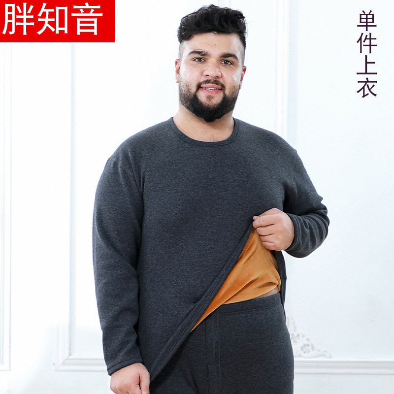 Fat bosom friend men and women middle-aged and elderly autumn and winter plus velvet thickened and soft plus size plus fat loose thermal underwear top