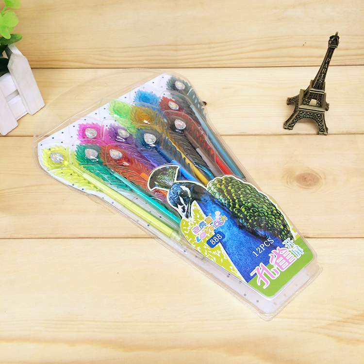 National Japanese and Korean stationery diamond head student gel pen cute feather peacock color gel pen water-based pen