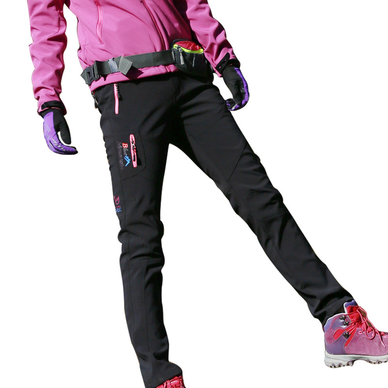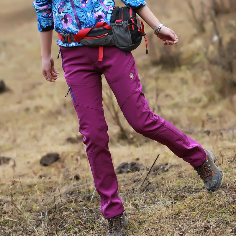 Outdoor new female style grip velvety pant trousers windproof and warm and soft and wear hiking mountaineering casual soft shell pants