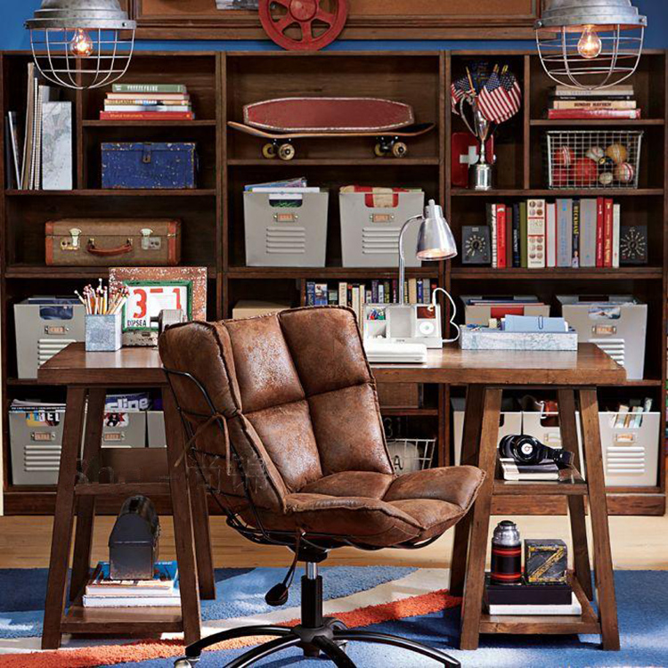 Retro Solid Wood Computer Desk Desktop Computer Desk Bookshelf Desk Brief modern European-style desk desk